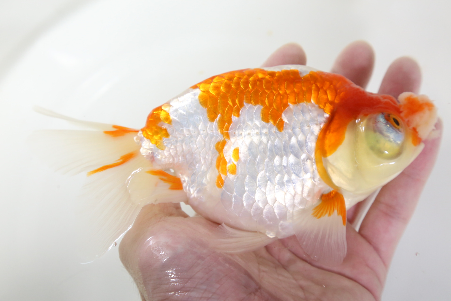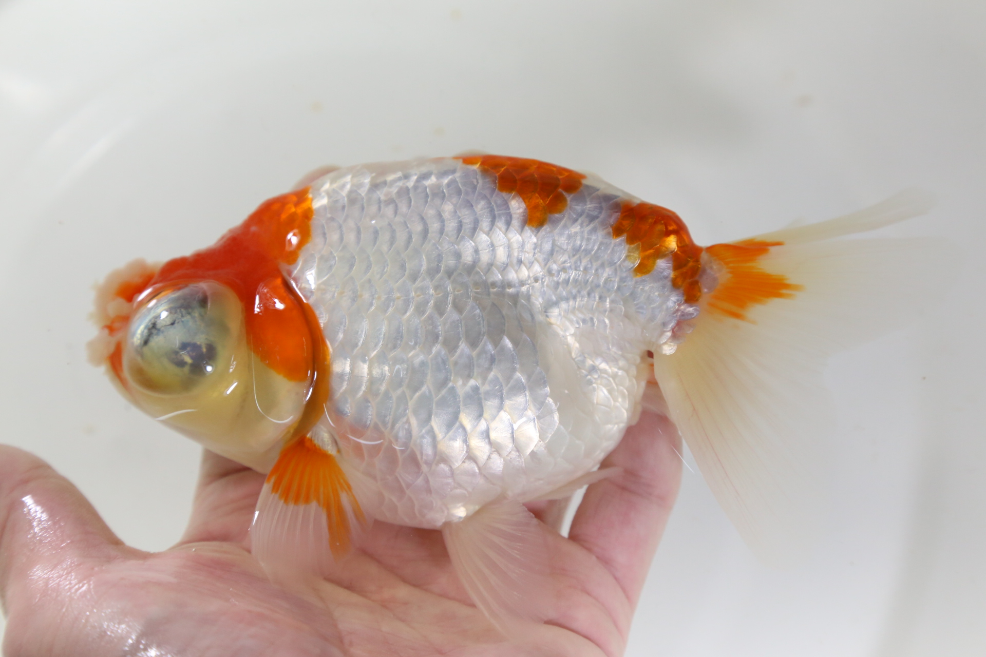 新着魚! 中国産 紅白望天眼絨球