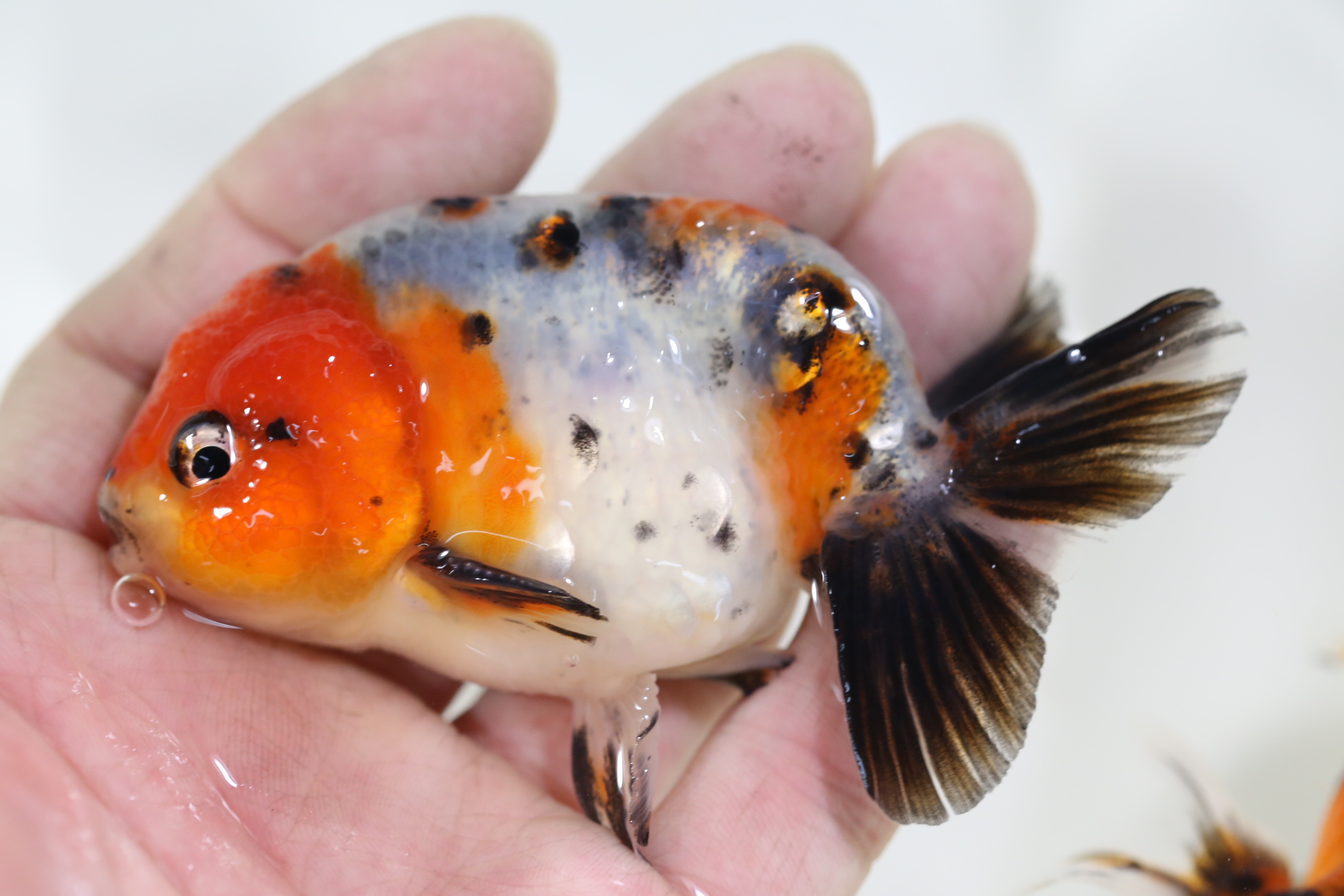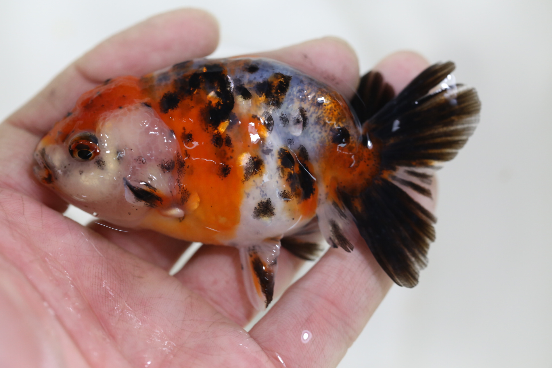 綺麗な絣・両目真っ黒の背鰭のある水泡眼 かなりレア!