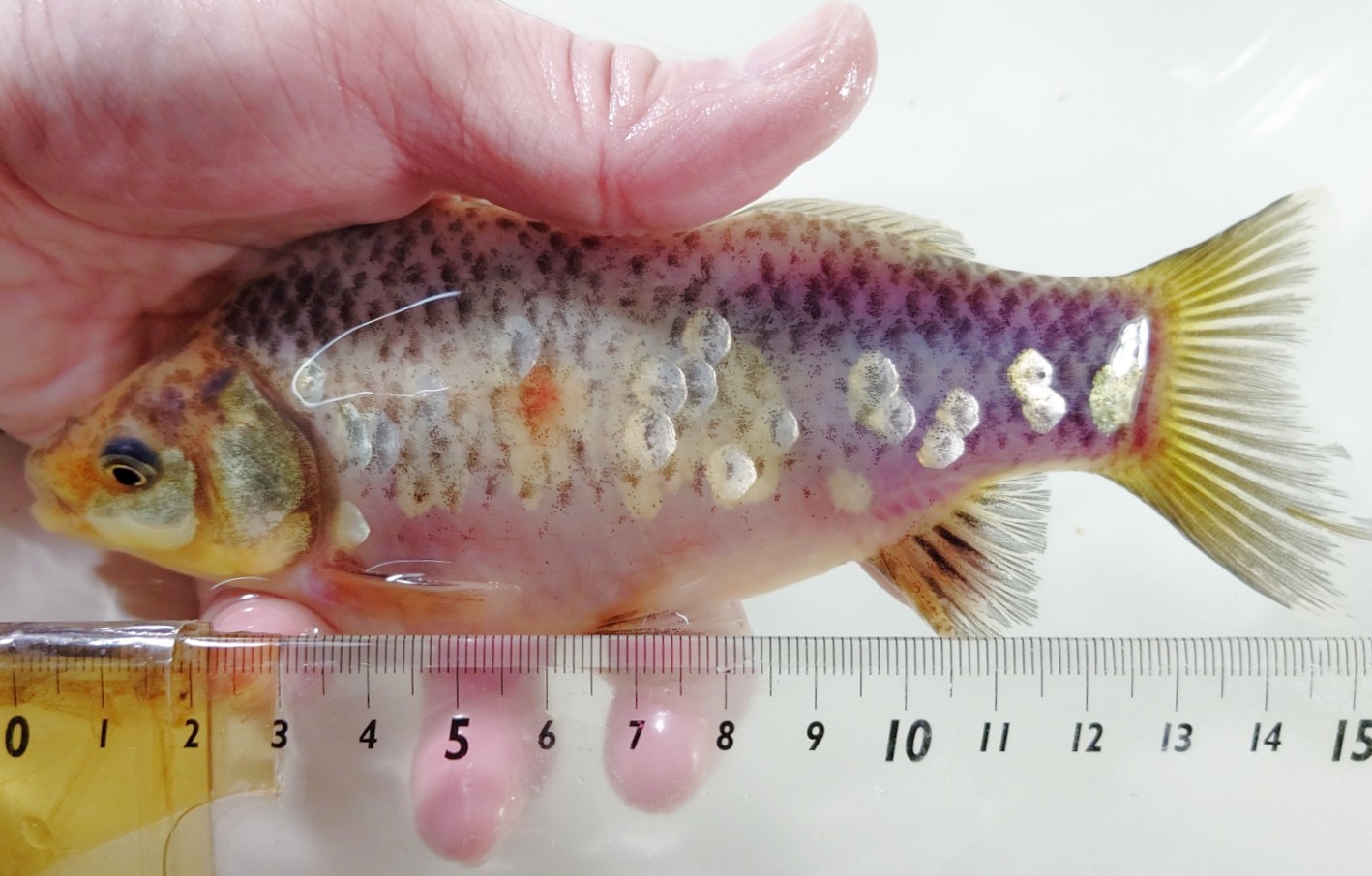 こちらは埼玉産 ピンポンパール 7匹います 白がほとんど 更紗数匹います