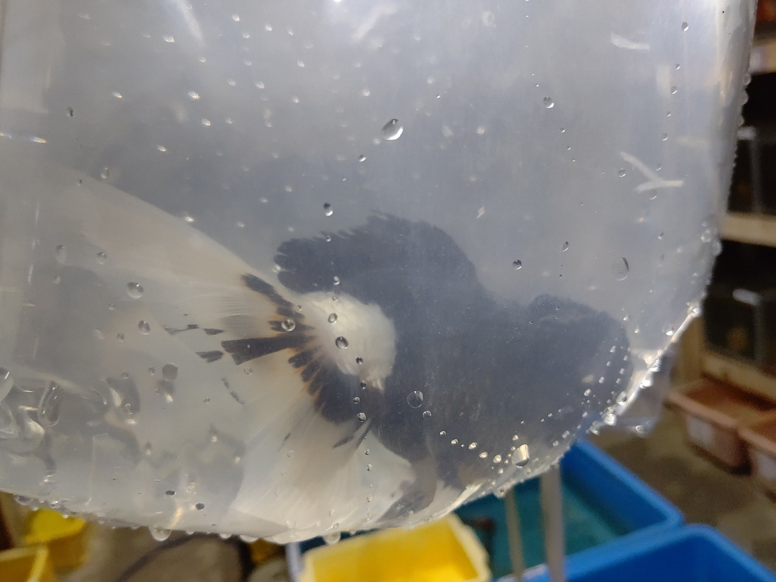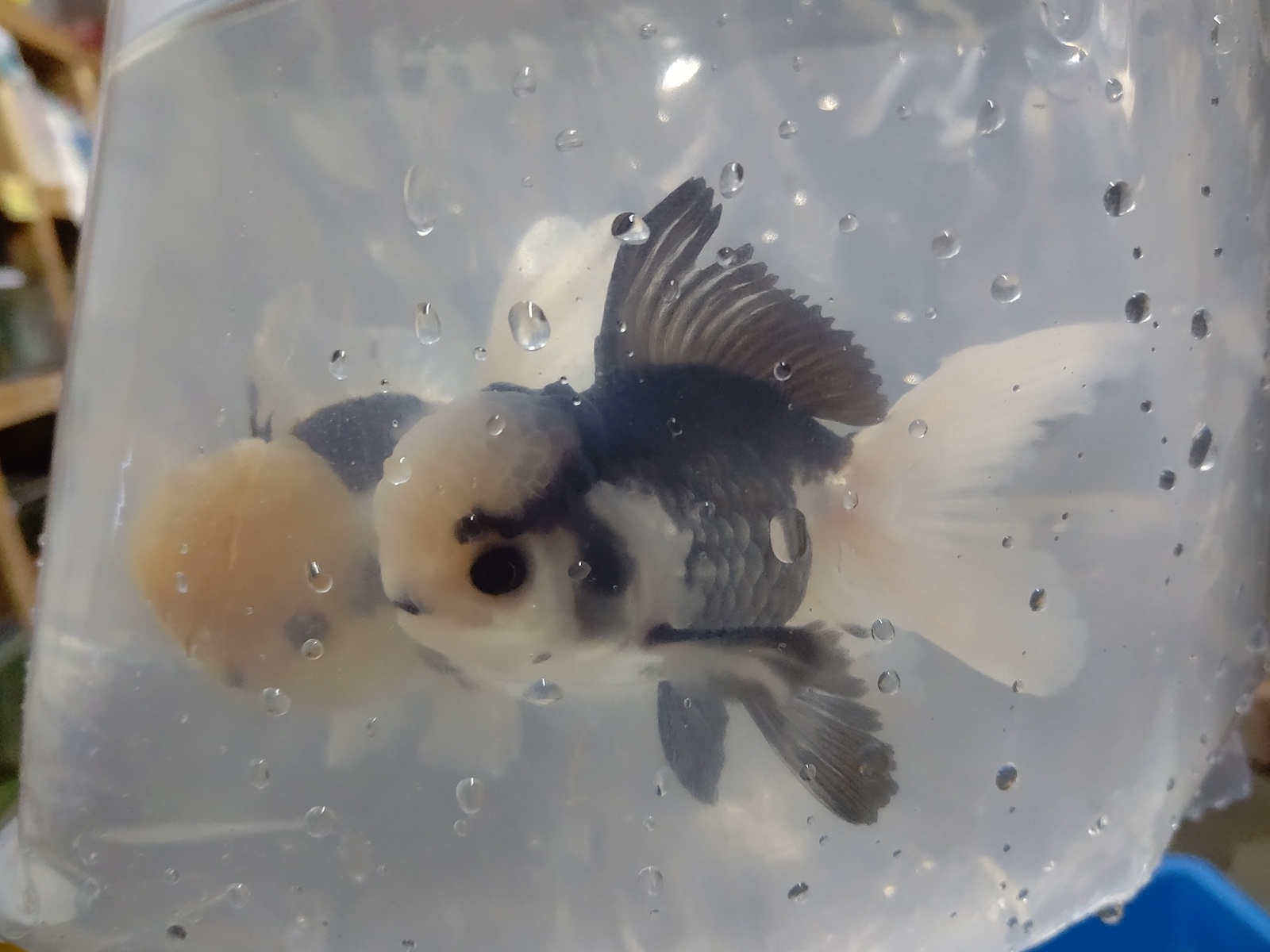 やや小さい バルーンタイプの白黒オランダ(白勝ち)