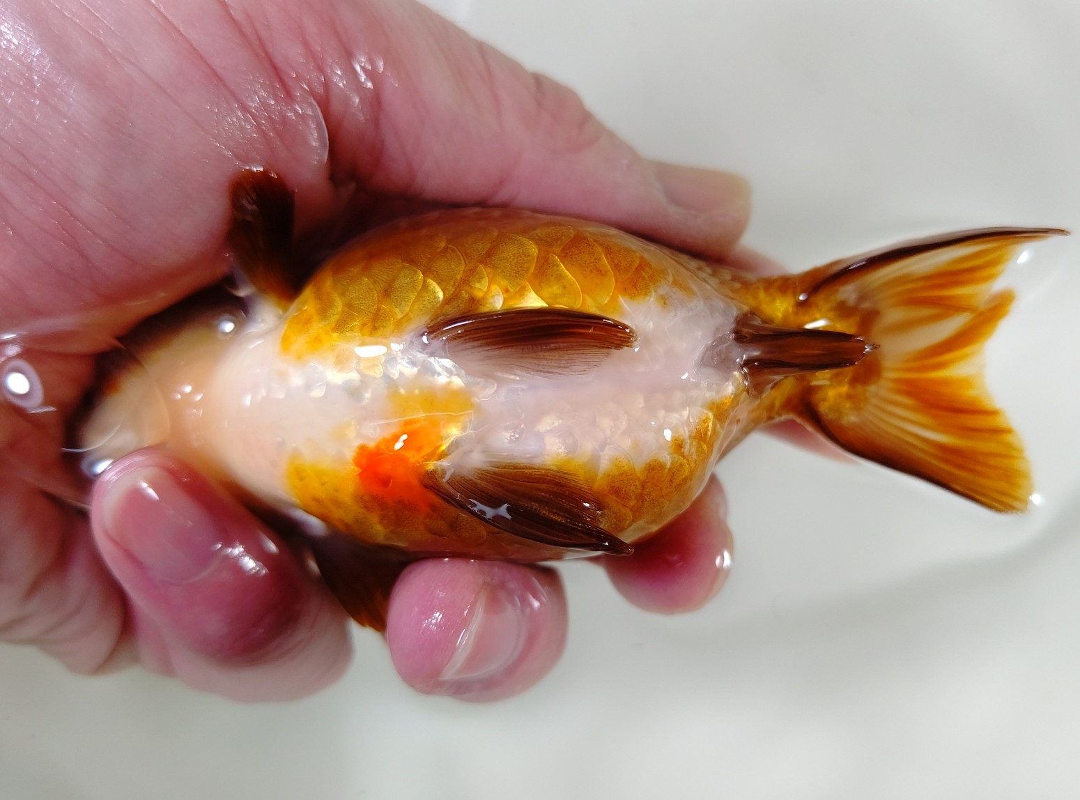 中国名:紅黒白短尾琉金