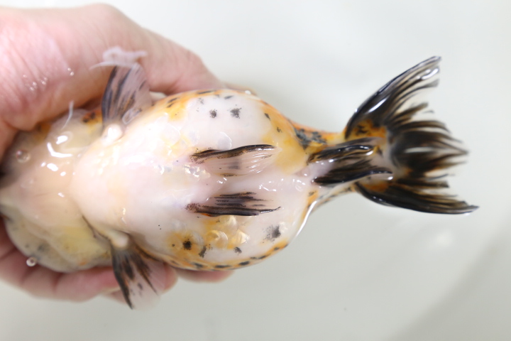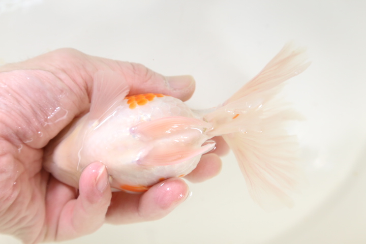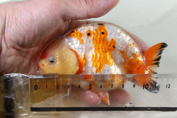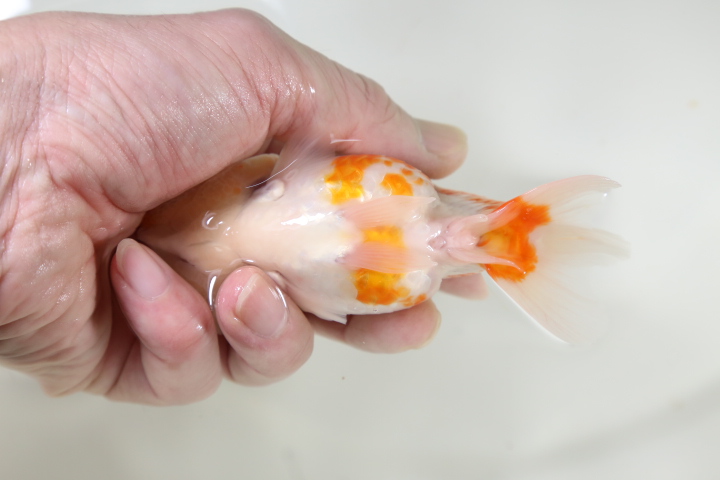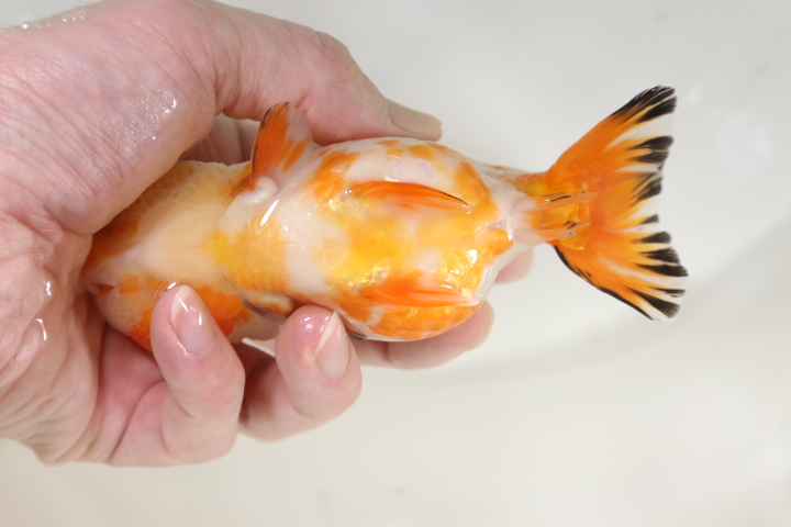 この子は極上金魚を輸入している専門問屋にて石Bが自分の目で見て連れてきました。