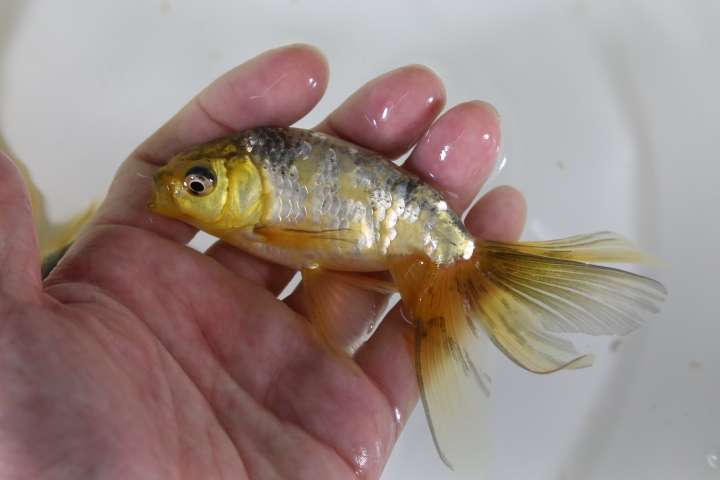 パール系の金魚ではなかなか見かけることのない品種