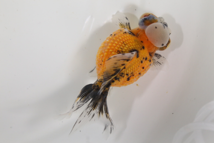 背鰭のないランチュウ体型で各鰭が長い