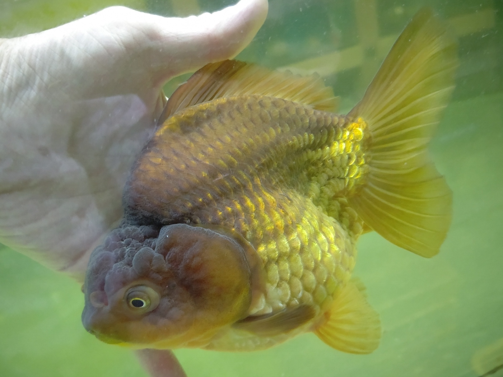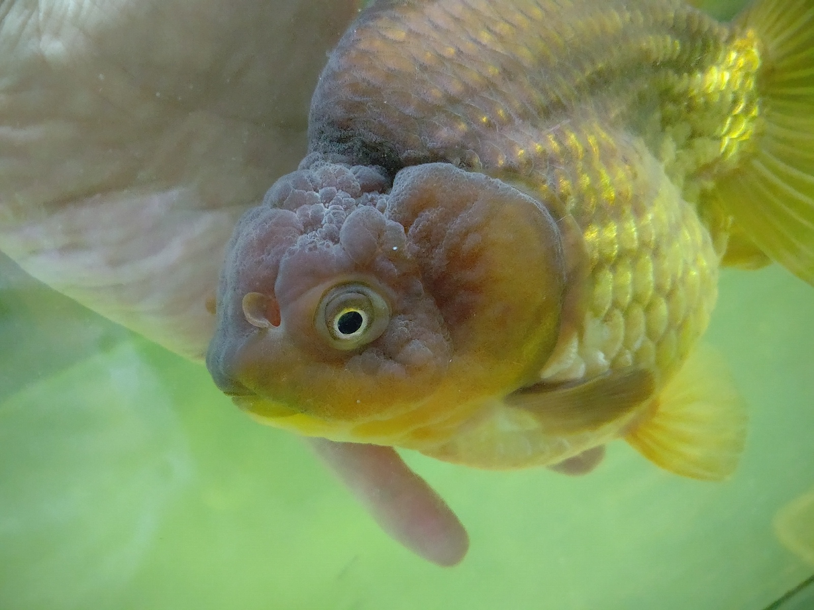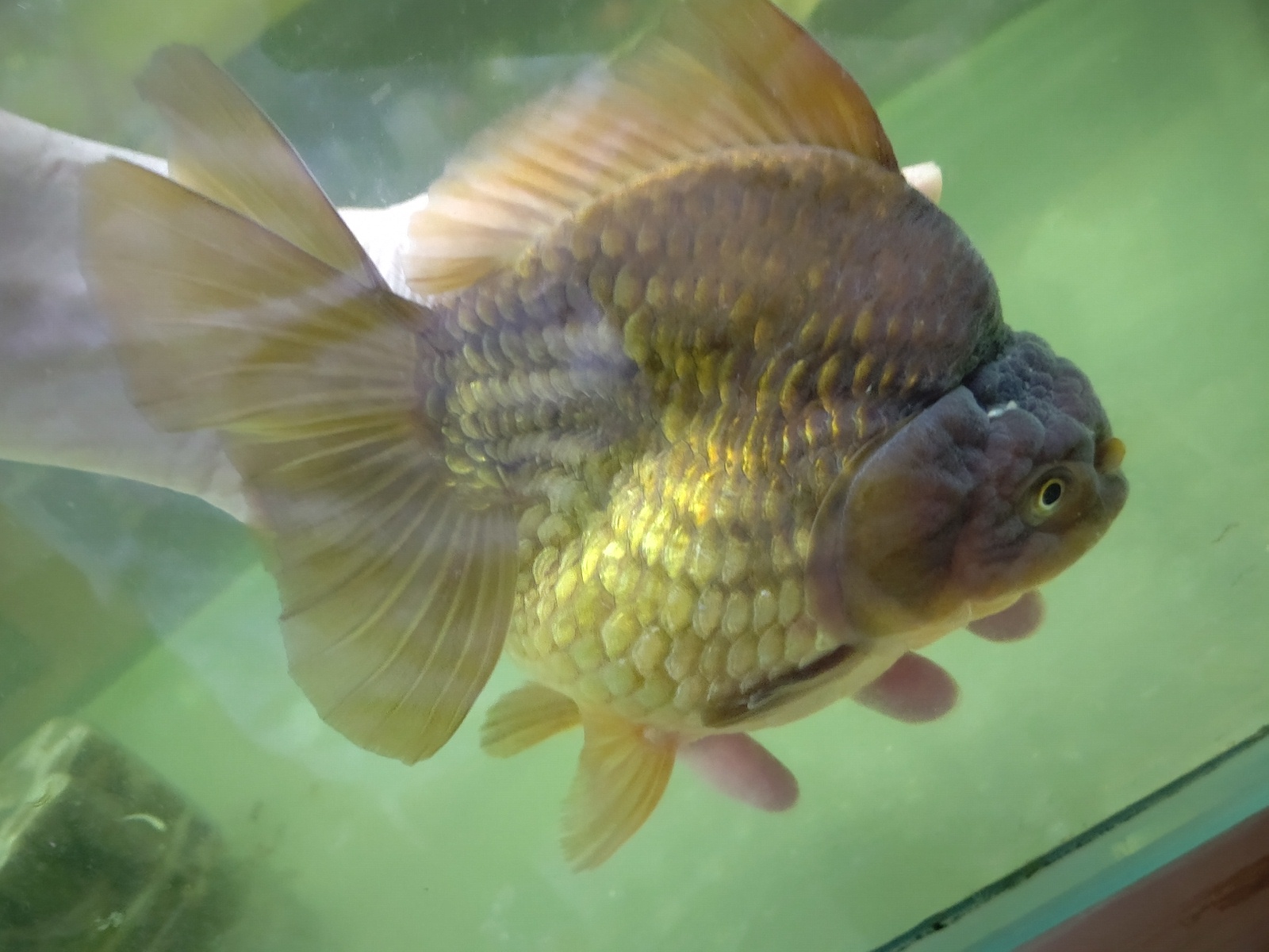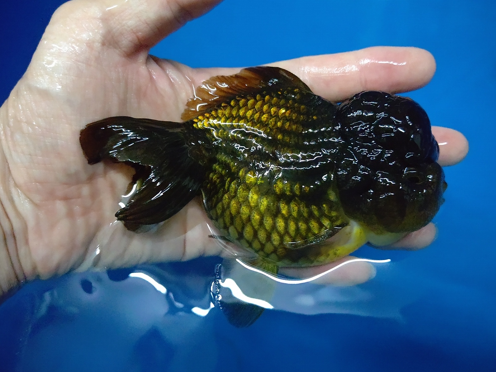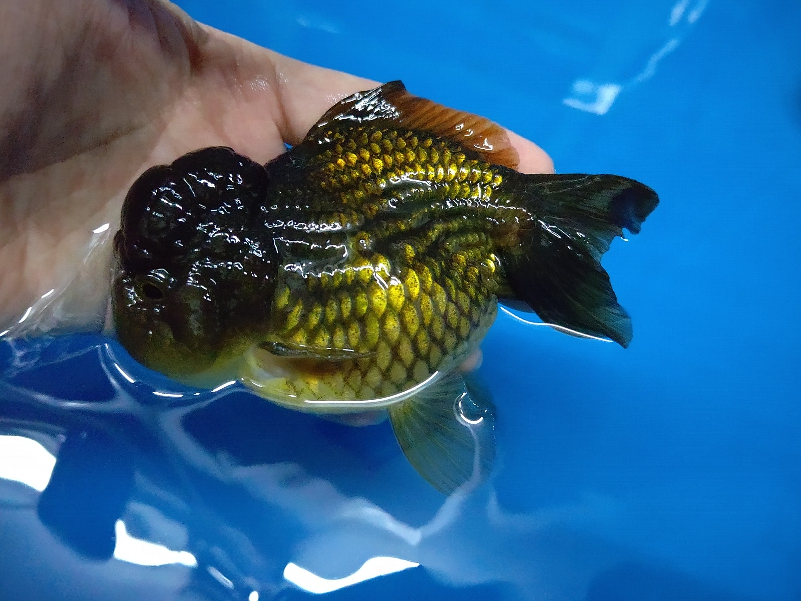 黒 獅子頭琉金 正確には 獅頭短尾琉金(緑) といった感じでしょうか???